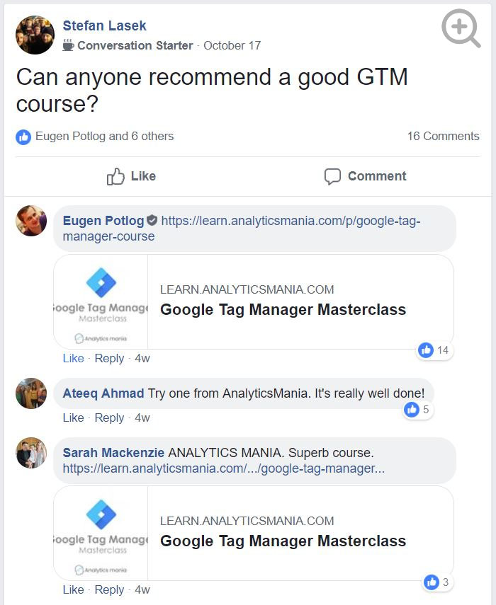 This sounds like a very low bar for an online course, right? But apparently, many Google Tag Manager courses in the market struggle with that.