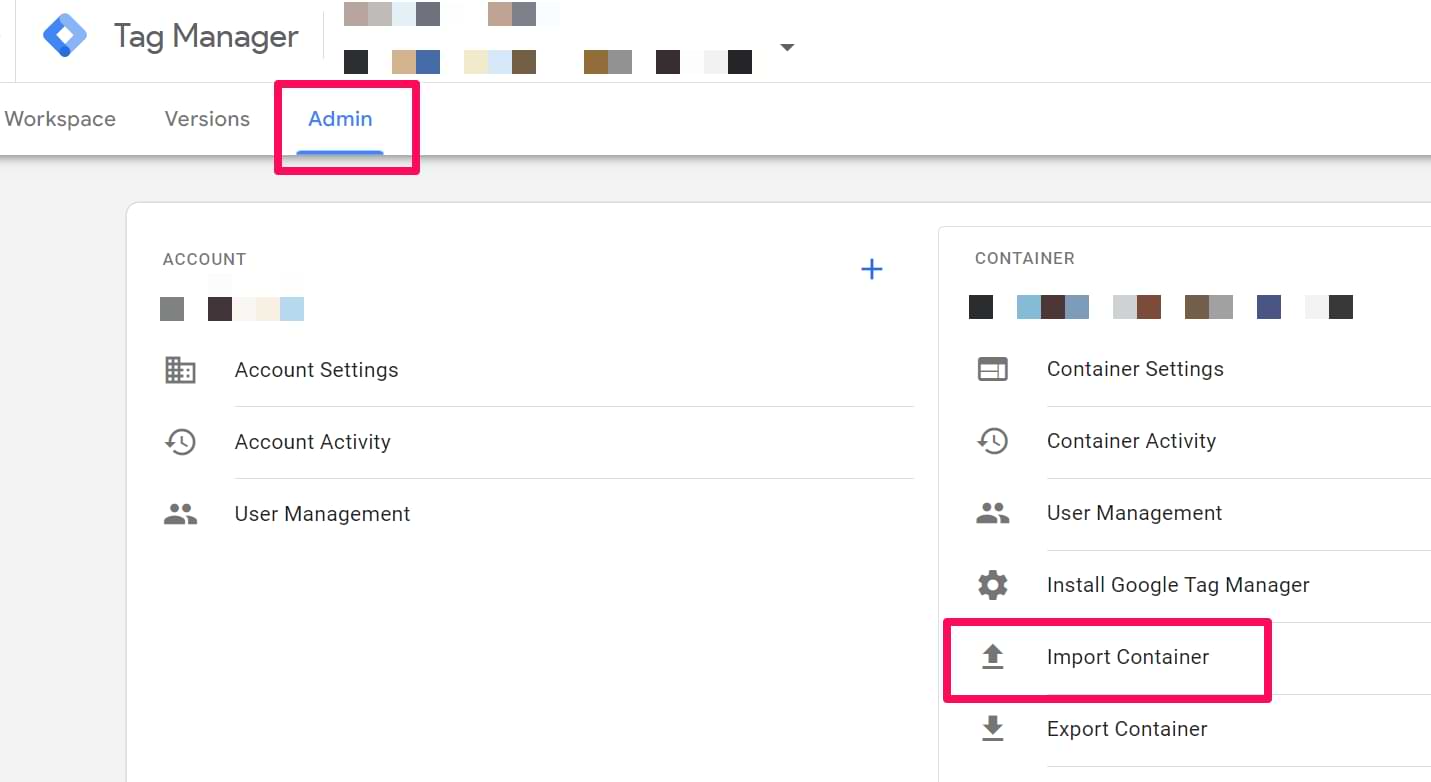 #1. Go to GTM container’s Admin section and click Import Container.