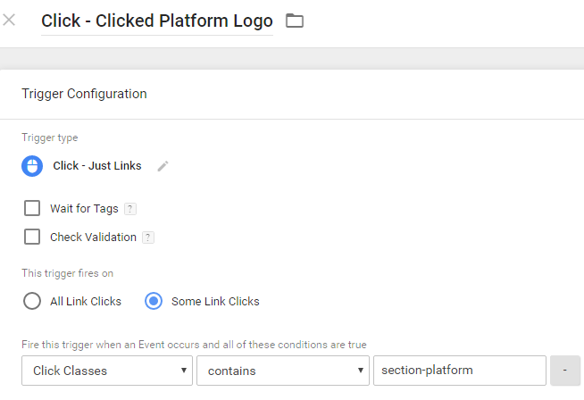 2. Set up a Click trigger (Just links), which fires only when any of the logos is clicked