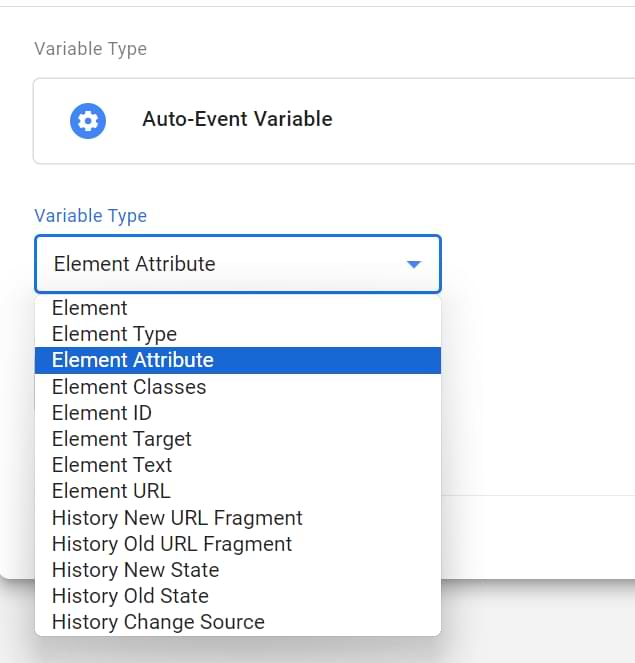 #3 Element Attribute  – Returns the value of a particular attribute of the auto-event element. You need to define the name of the attribute you are interested in. All examples in this blog post are dedicated to this type of auto-event variable.