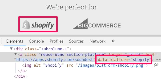 I was interested in which vendors are the most popular among our website visitors. Luckily, each logo contained an attribute with the vendor’s title – data-platform (I could by using the Inspect element feature).