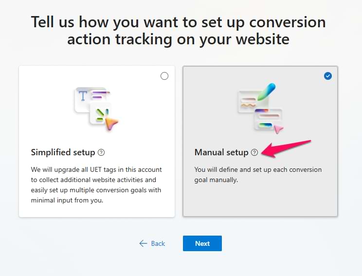 Finally, you will be asked if your UET tag is installed. Select the “Yes” option.