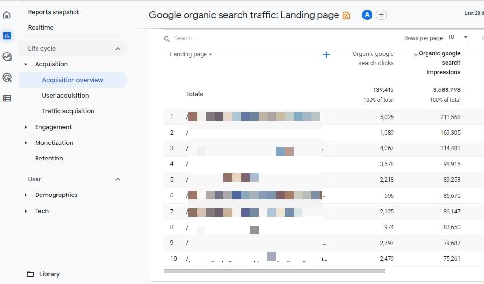 And the same applies to all other blog posts/pages. In regular GA4, only Thank you pages get the credit for confirmed_email_optin conversions. In GSC GA4 reports, those conversions are split among landing pages that are visited before the final Thank you page visit.