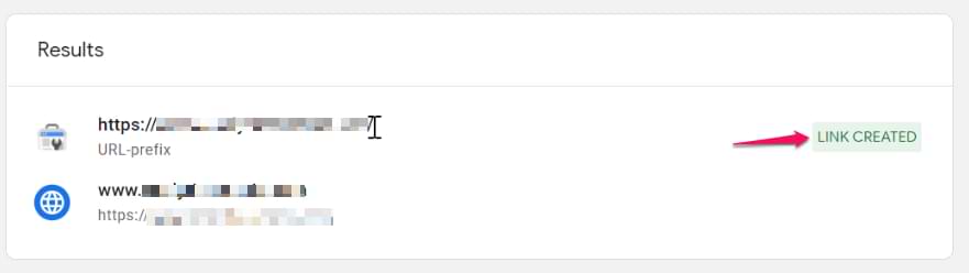 After that, you will see a green badge Link Created. This confirms that you have connected two properties successfully.