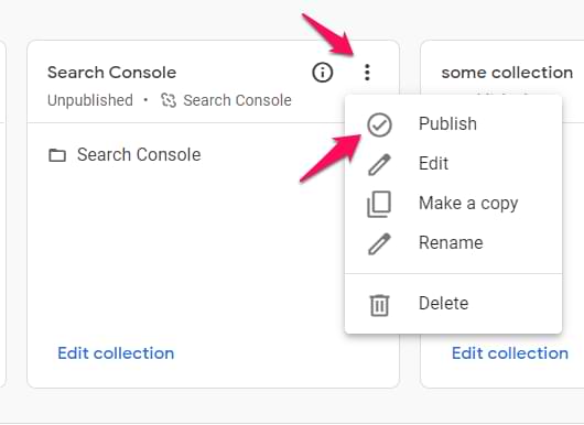 Then find a new widget called Search Console. It will be displayed as Unpublished. Click 3 dots next to it and press Publish.