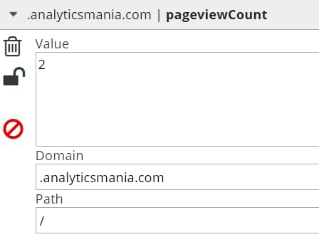 - cookieValue – In the case of visitorFromGoogleAds possible values can be true or false. For example, affiliateID cookieValue can be 2385437, and pageviewCount cookie’s – 5.