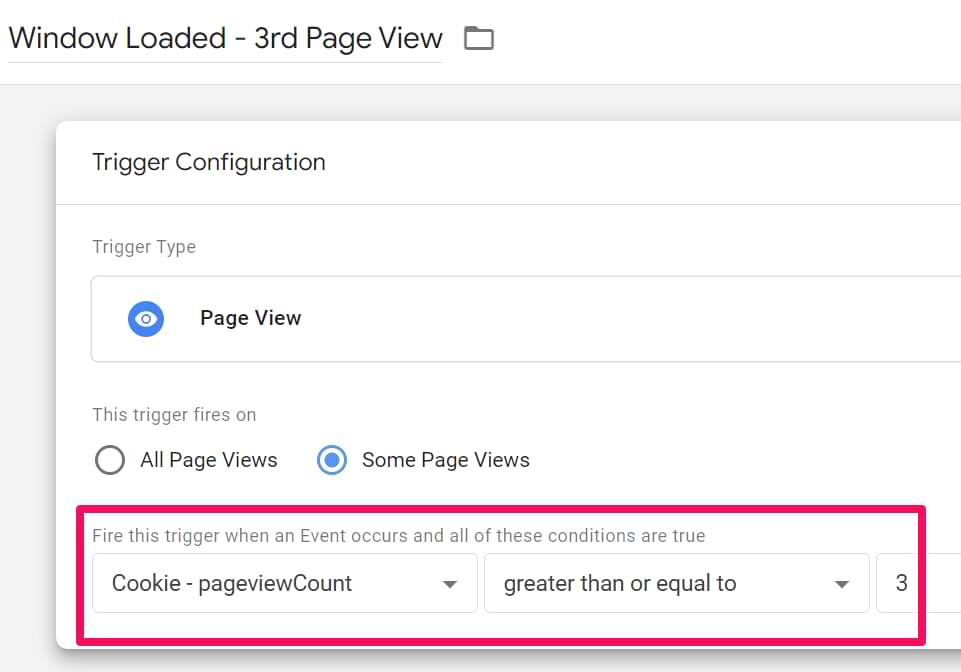 This trigger will fire when the cookie’s value is greater than or equal to 3.