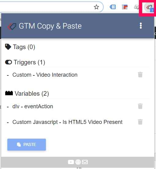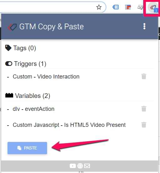 Then click on the GTM Copy Paste icon and press the Paste button.