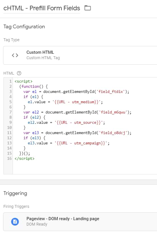 - Also, the Custom HTML tag (which prefills form fields) should be fired (you can check that in GTM Preview and Debug panel).
