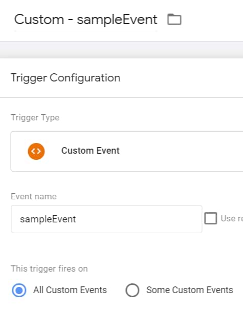 “Setup tag” also uses the same “sampleEvent” Custom Event Trigger.