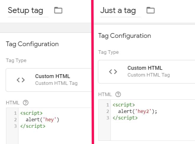 I have two tags – I named one “Setup tag”, and the other is “Just a tag”. In this case, it does not matter what those tags do.