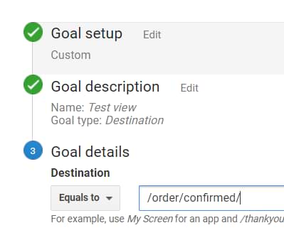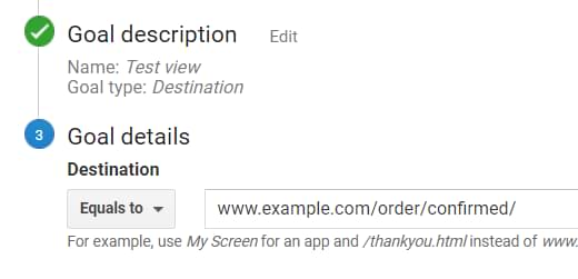 Naturally, the next logical step is to create a goal in Google Analytics. However, sometimes this part becomes a bit confusing and the result might look like this: