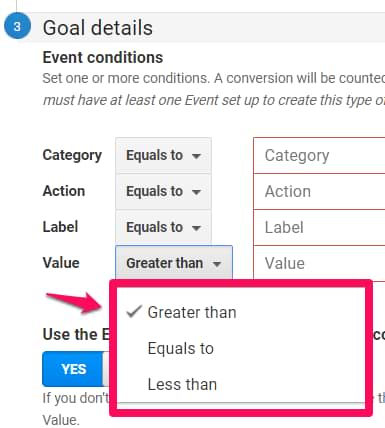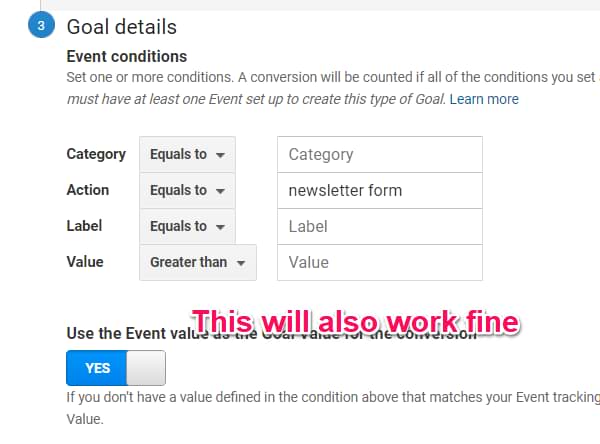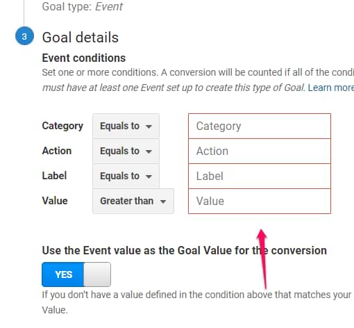 #1. You don’t have to fill in all the fields in the event-based goal settings