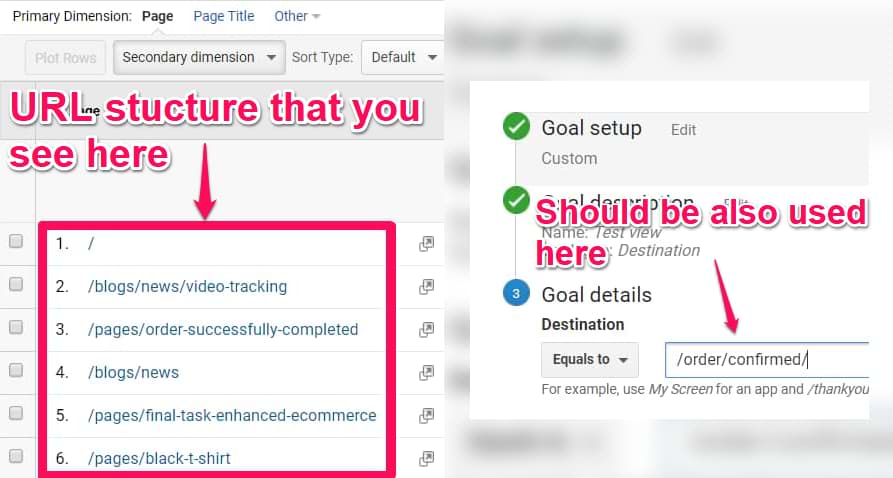 Also, if you enter /pages/thankyou in your goal settings but a visitor lands on a /pages/thankyou/, your goal will not be counted by GA because the 2nd URL contains the trailing slash.