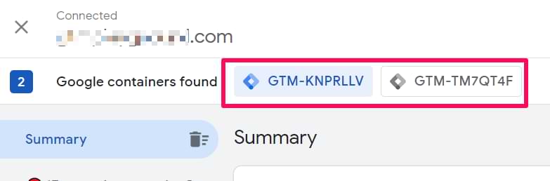 What will happen next is that you will see a new GTM container appear in the top bar. If you already saw it, then from this moment, it will start displaying events and data as well.