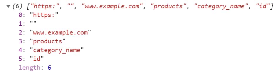 But that’s not all. We need to tell the split() method how exactly we want to split the Page URL. If we go back to our example, we’re working with the https://www.example.com/products/category_name/id (p.s. if you’re trying to follow this along, you can work on some other page where the URL contains some subdirectories).