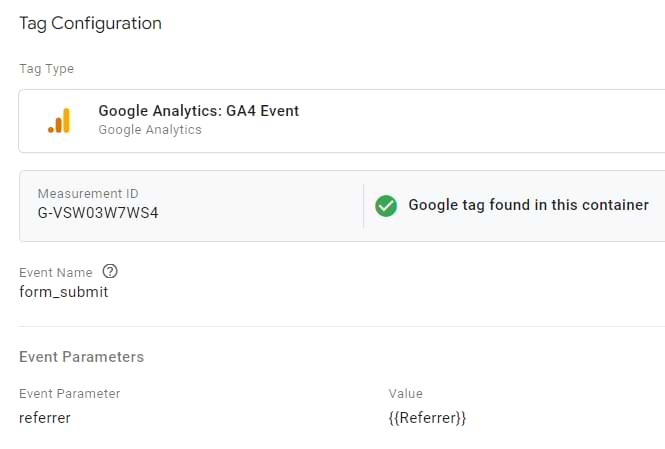 In this example, the referrer event parameter will contain the URL of the previous page (the landing page where the form was submitted). Problem solved! Also, don’t forget to register “referrer” as a custom dimension.
