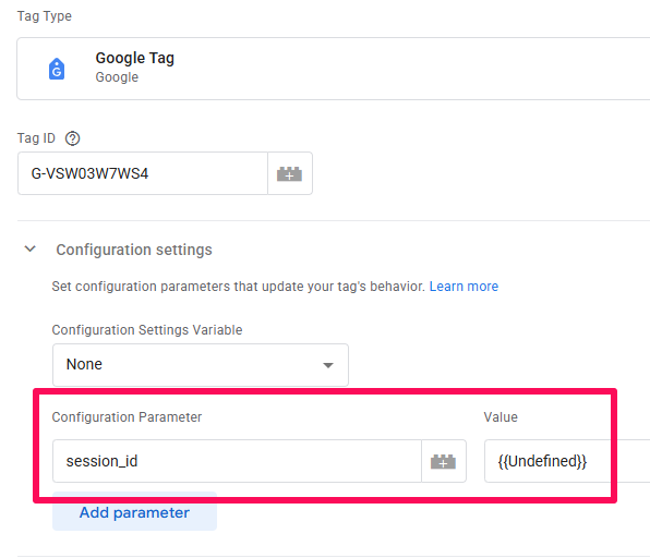 The result? No impact. Since the parameter was set to undefined, the GA4 tag just ignored that parameter, and the session_id was generated by Google Tag as usual.