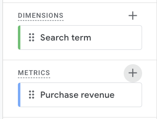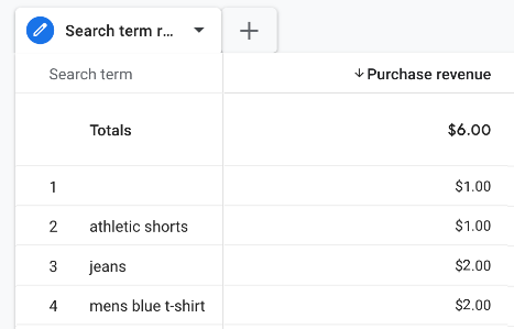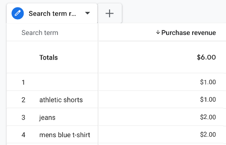 Double-click on the Search term and the Purchase revenue to add them to your report. Now, you can see the revenue associated with each keyword.