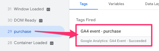 Go to Preview mode, enter your site’s URL and make a purchase. Back in Preview mode, confirm that the tag appears under the purchase event.