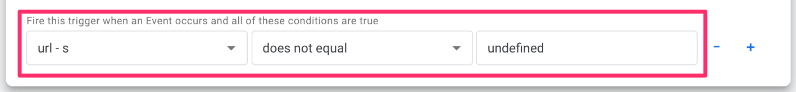 In the conditions, select “url – s”, then “does not equal” and type “undefined” in the textbox. This means the cookie will only collect the search term when available.
