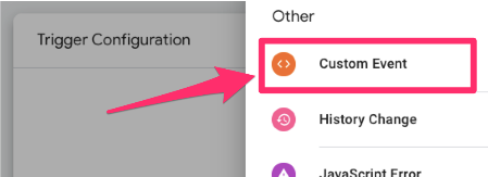 Click “Trigger Configuration” and select “Custom Event” under Other.