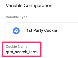 Name the cookie the same as the cookie we created above, e.g. “gtm_search_term”.