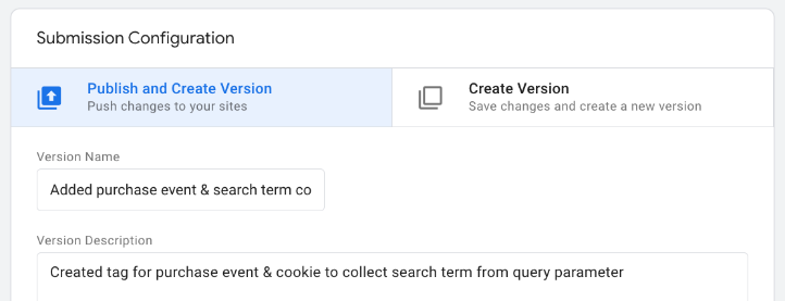 Submit and publish the changes in your GTM container (don’t forget to name your version and add a short description)!