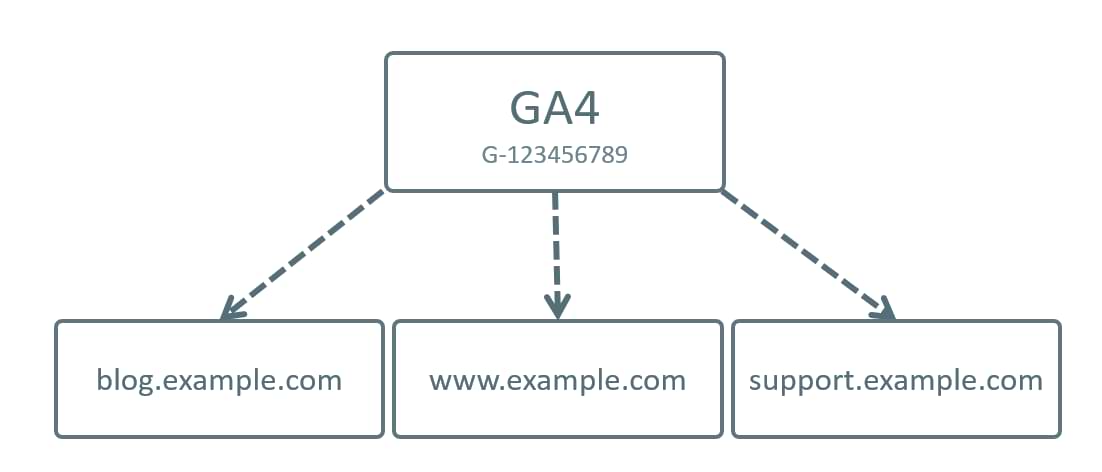 If you are working with a business that operates on multiple subdomains (e.g., blog.business.com, support.business.com, www.business.com, etc.), you will most likely want to track website visitors with Google Analytics 4 across all these websites.