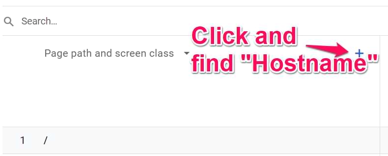 The first one is to add the secondary dimension (hostname) to the standard report. You can do that by clicking the Plus icon in the report and finding that dimension.