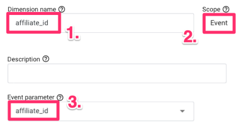 - A custom dimension for the affiliate_id so that we can see it in our reports