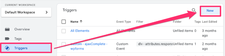 In GTM, go to Tags in the left-side navigation and click “New”.