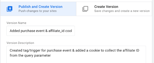 Submit and publish the changes in your GTM container (don’t forget to name the version and add a short description)!