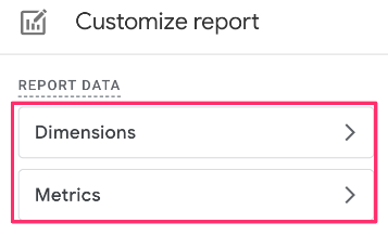 There are two parts of the report we want to customize: Dimensions and Metrics.