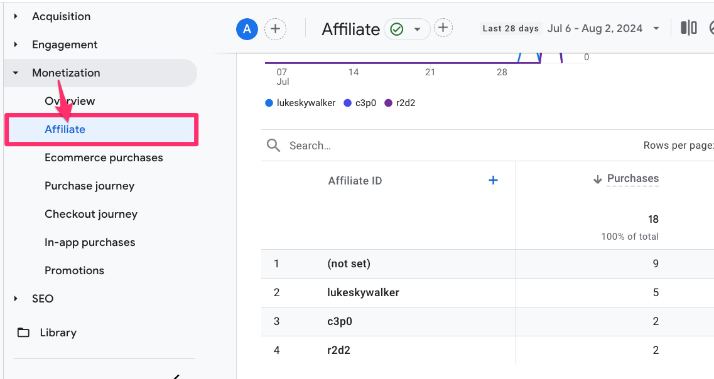 Similar to the site search terms with revenue in GA4 article, the process will be to capture the affiliate ID from the URL into a cookie and pass that along with the purchase event (which I will show you how to implement if you don’t have it already), so that the sale can be attributed to the correct affiliate.