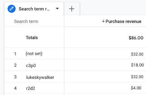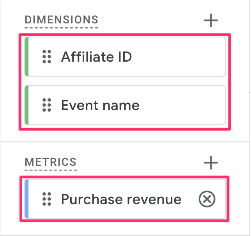 Double-click on the Affiliate ID and the Purchase revenue to add them to your report. Now, you can see the revenue associated with each affiliate ID.