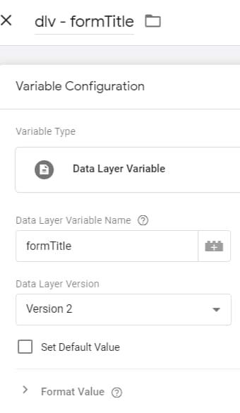 If you also want to use formTitle in GTM, create another DLV (Data Layer Variable) for that key as well. Remember, those values are case-sensitive. formtitle ≠ formTitle.