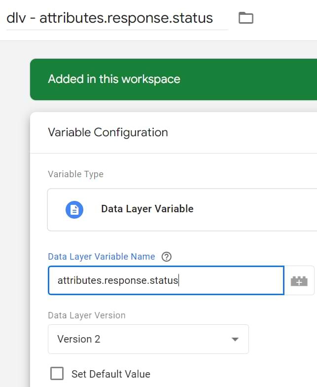 In my example, the status key is outside the object response, which is inside another object called attributes. That is why in the Data Layer Variable, you should enter attributes.response.status (if you have no clue what I’m doing here, read this guide)
