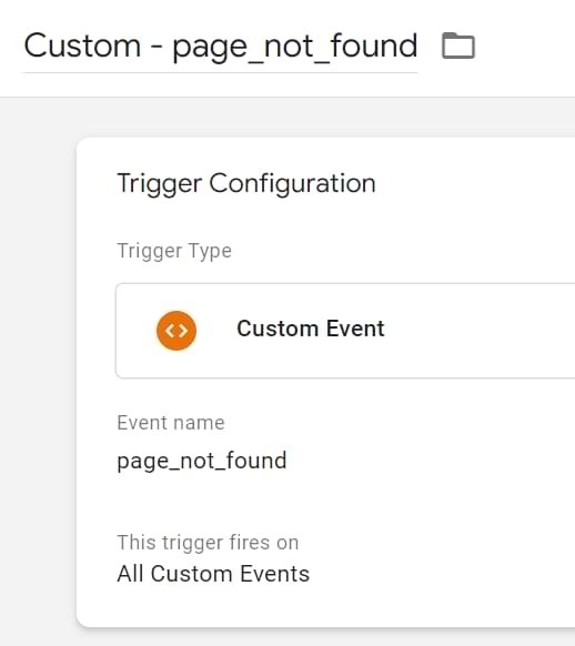 Enter the value of the “event” key in the “Event name” field. If you used my code example, enter “page_not_found” (without quotation marks).
