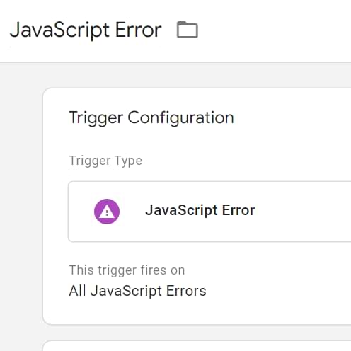 GTM has a built-in trigger that captures uncaught JavaScript errors. If you look at the list of all possible trigger types in GTM, you can probably easily guess which trigger I’m talking about. Yes, it’s a JavaScript Error trigger.