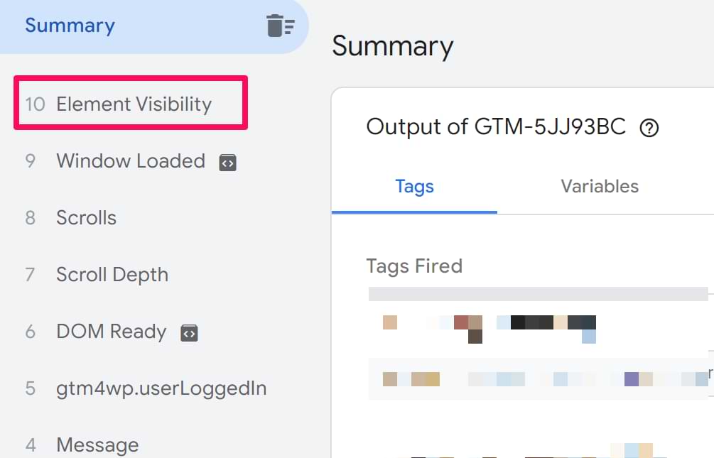 The Element Visibility event should appear on the left side of the Preview mode panel.